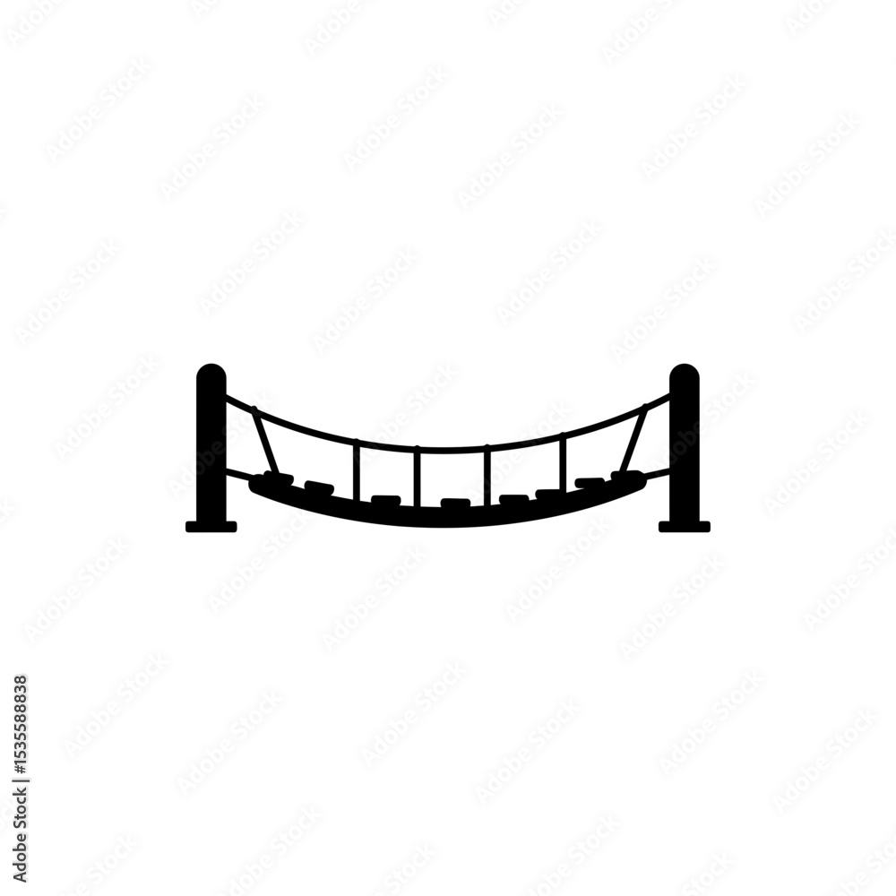 Foto Hanging Bridge with Rope Supports and Wooden Planks Over Water