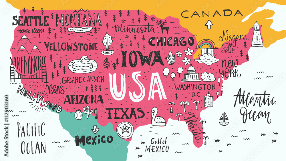 Schilderij op canvas Map of USA
