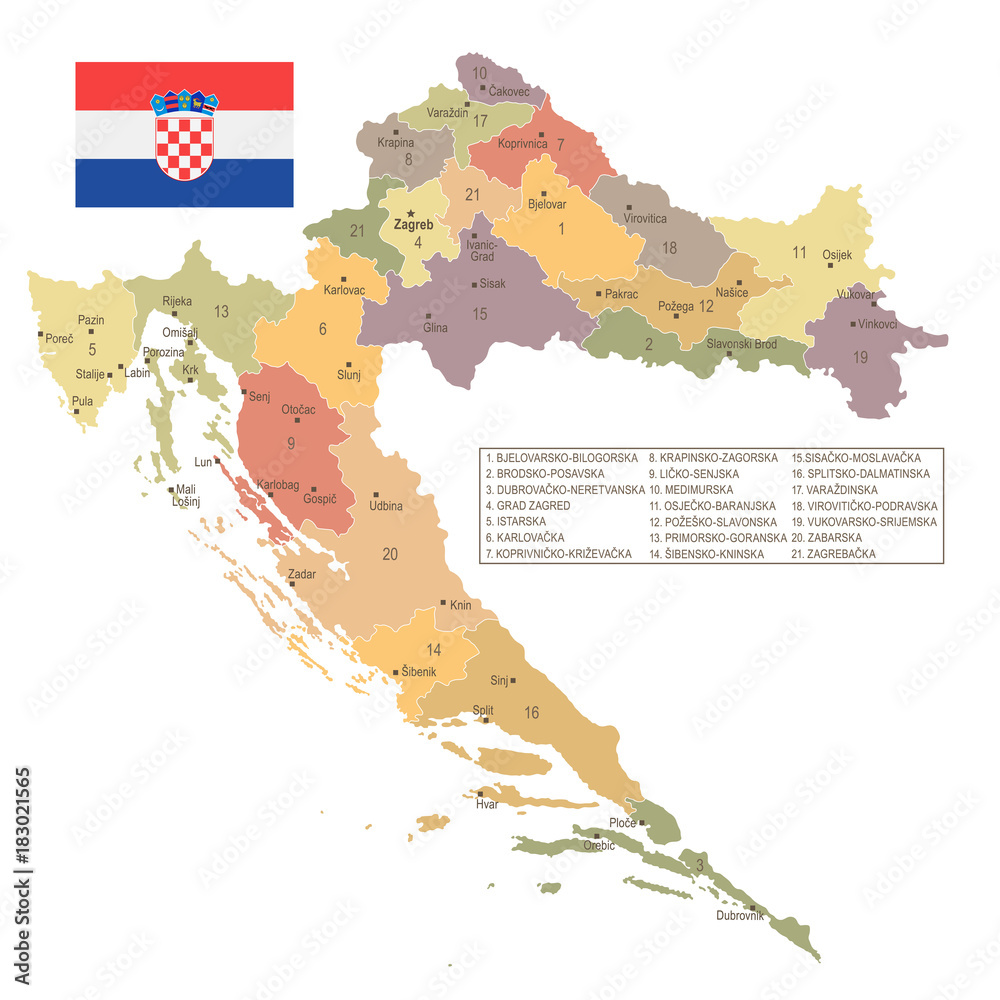 Foto Croatia - vintage map and flag - Detailed Vector Illustration