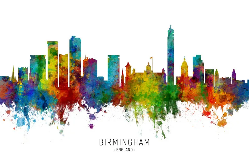 Poster Birmingham England Skyline Cityscape Painting Watercolor