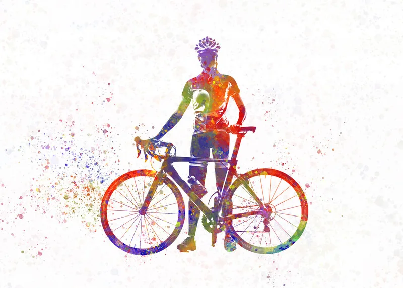Schilderij op canvas cyclist in watercolor