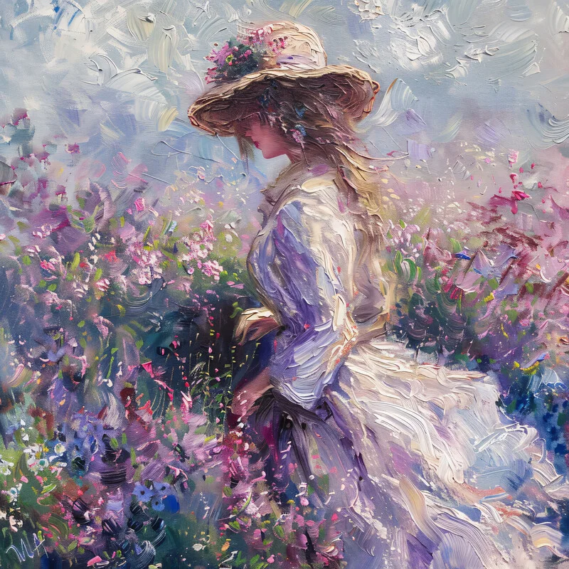 Schilderij op canvas Lady in dress in nature, Uplifting Scent of Life, wall decor