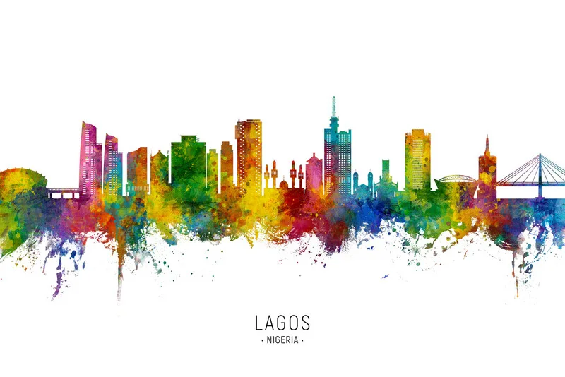 Poster Lagos Nigeria Skyline Cityscape Painting Watercolor