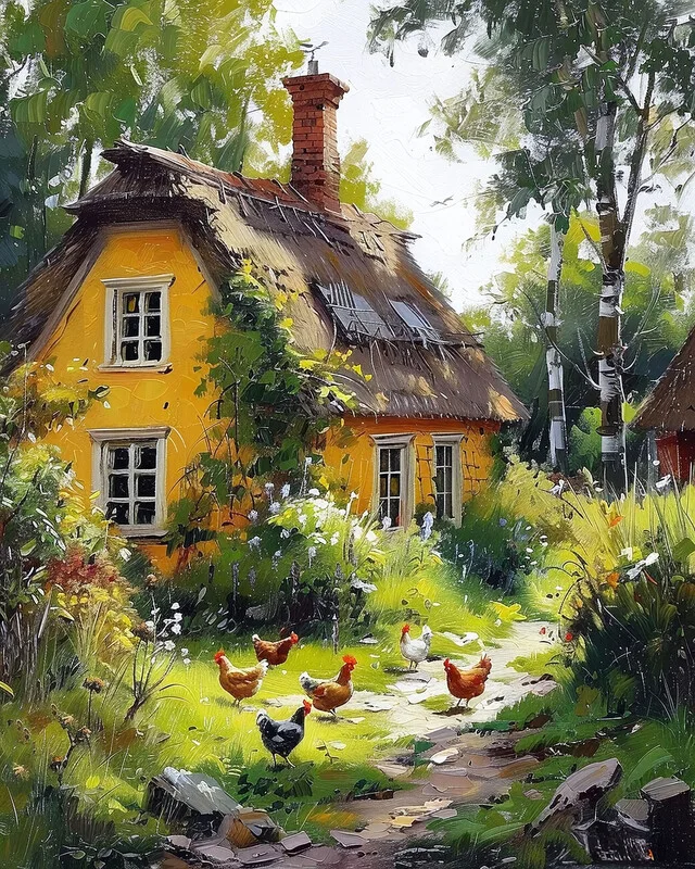 Schilderij op canvas Wooden Cottage in the Countryside Surrounded by Blossoming O