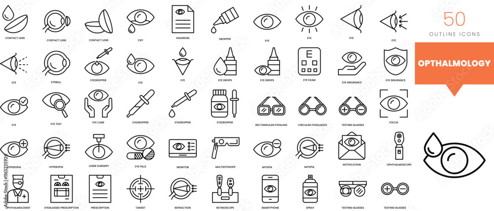 Schilderij op canvas Set of minimalist linear opthalmology icons. Vector illustration